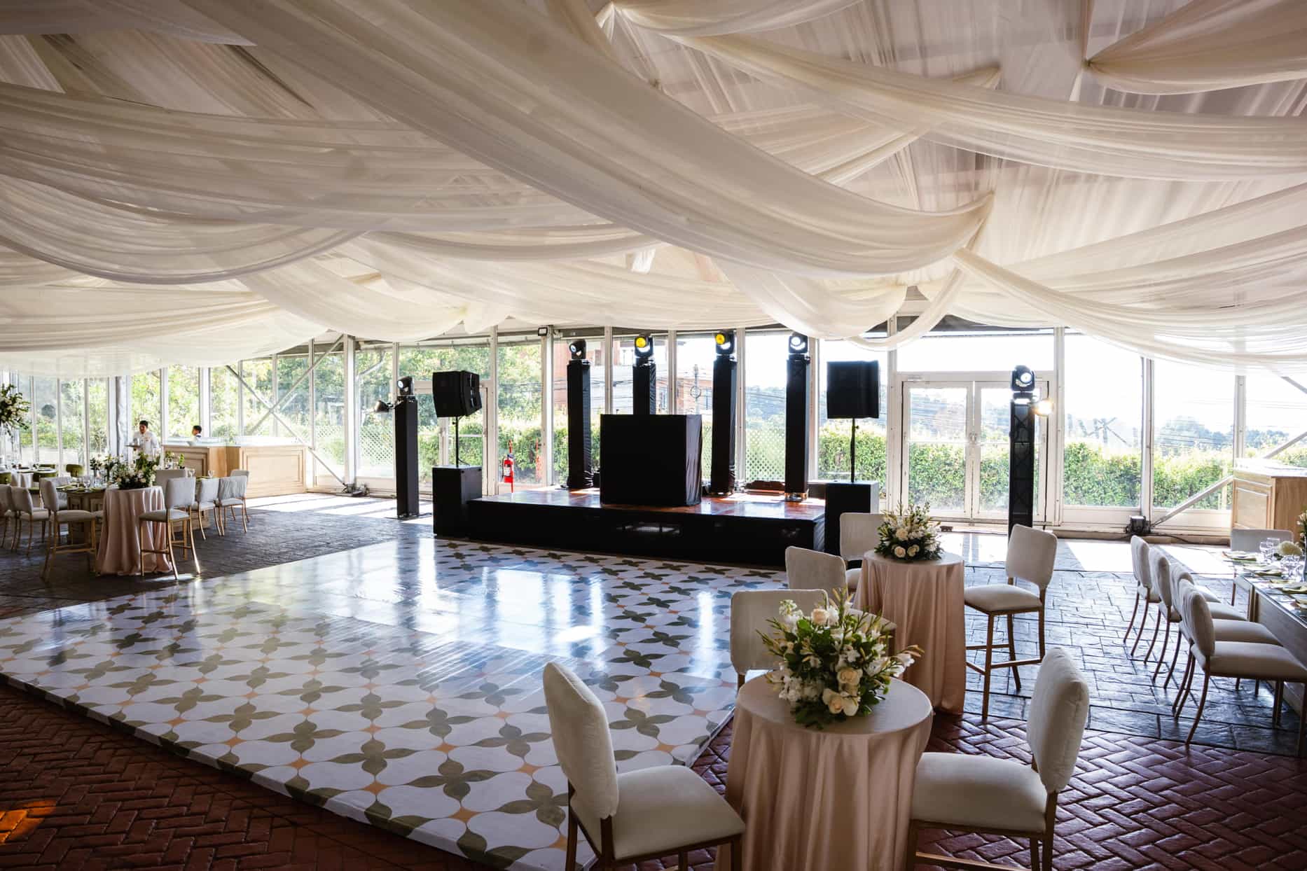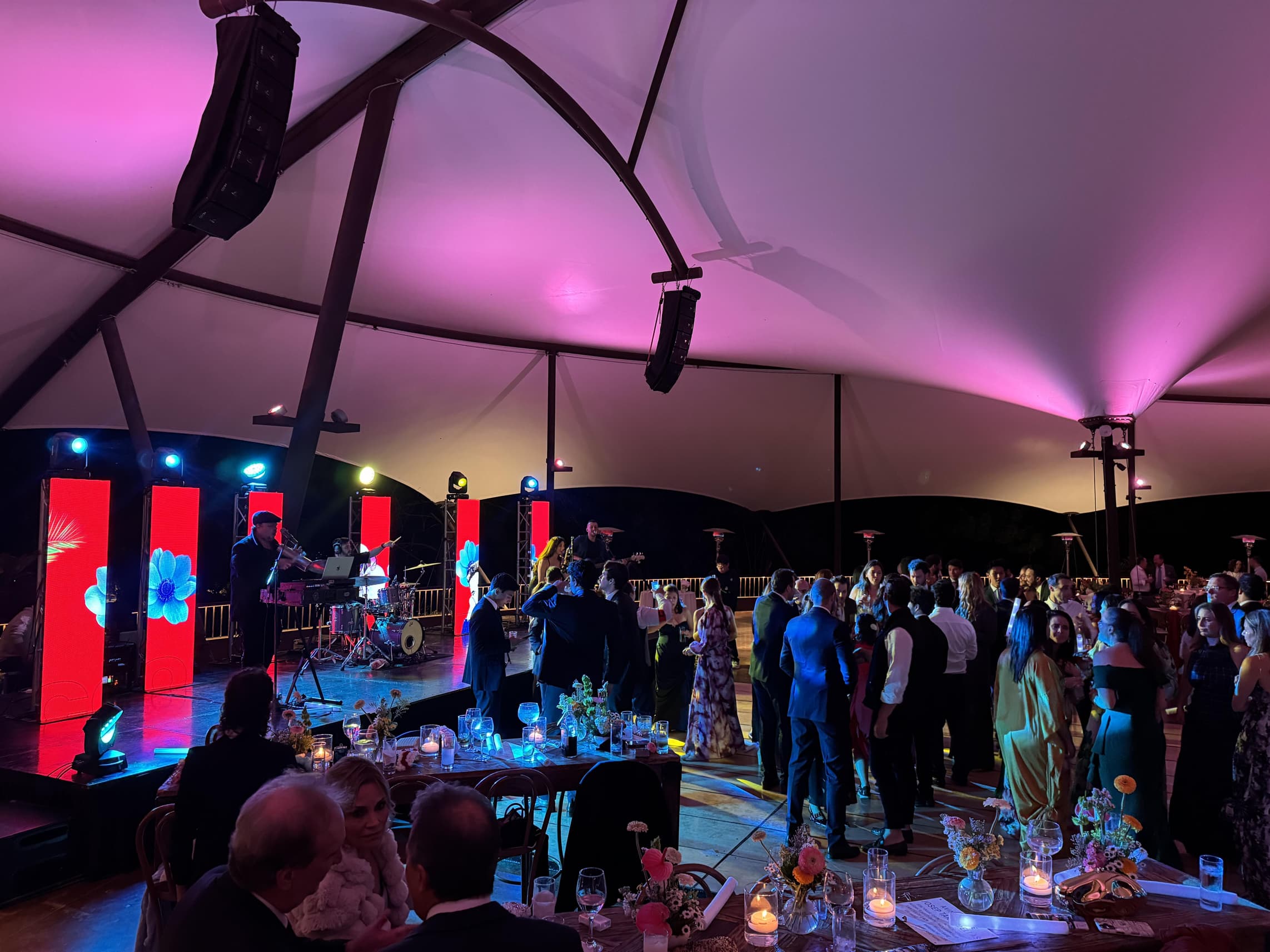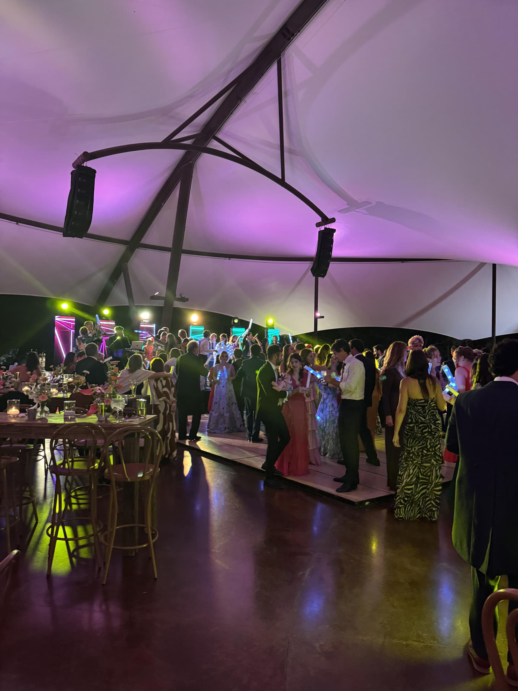 Iluminación, pistas de baile, pantallas LED y elementos visuales que transforman espacios en escenarios funcionales y sofisticados.